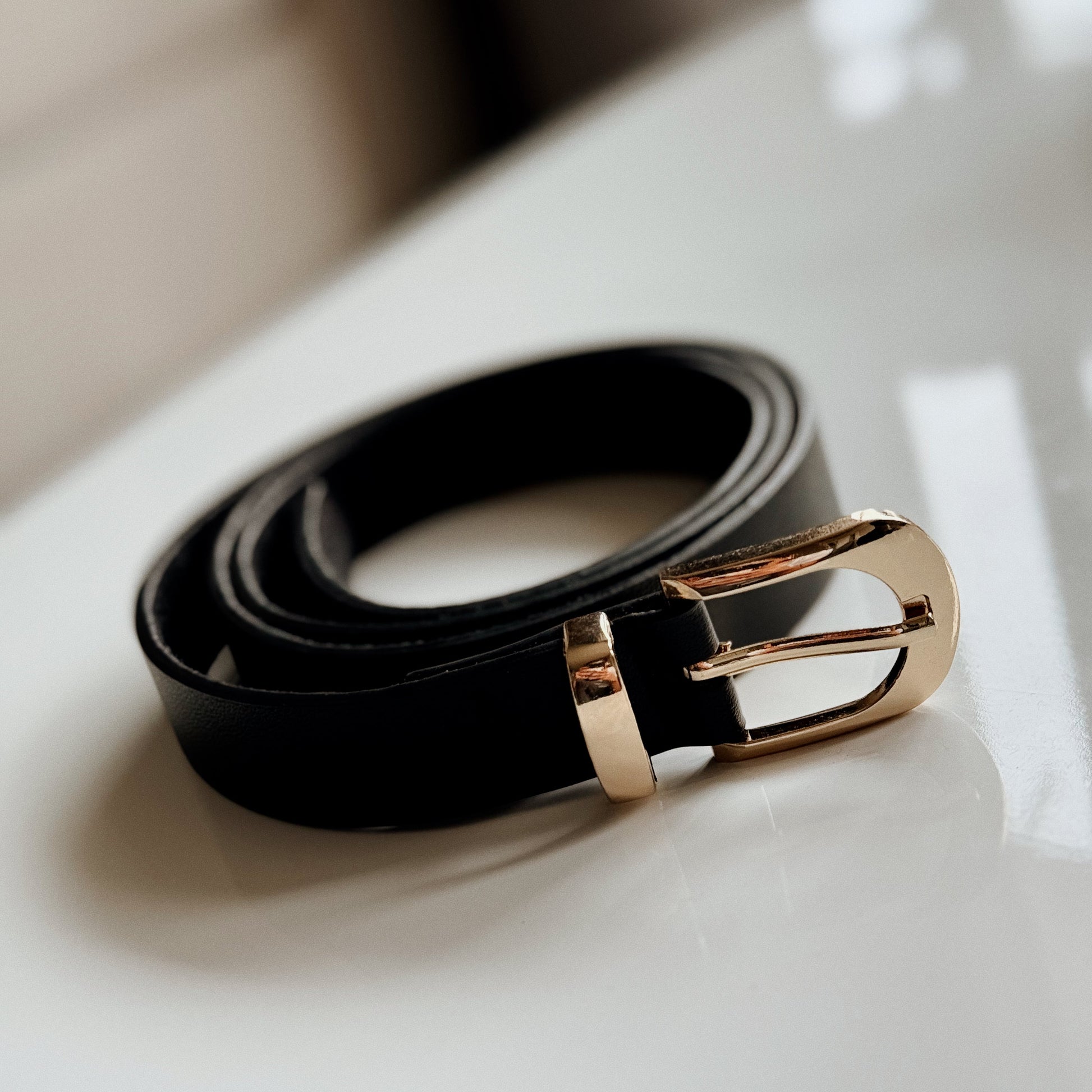 Un cinturón que combina con todo — desde jeans hasta vestidos — con hebilla dorada de 3 x 4 cm y correa de 2.5 x 110 cm.