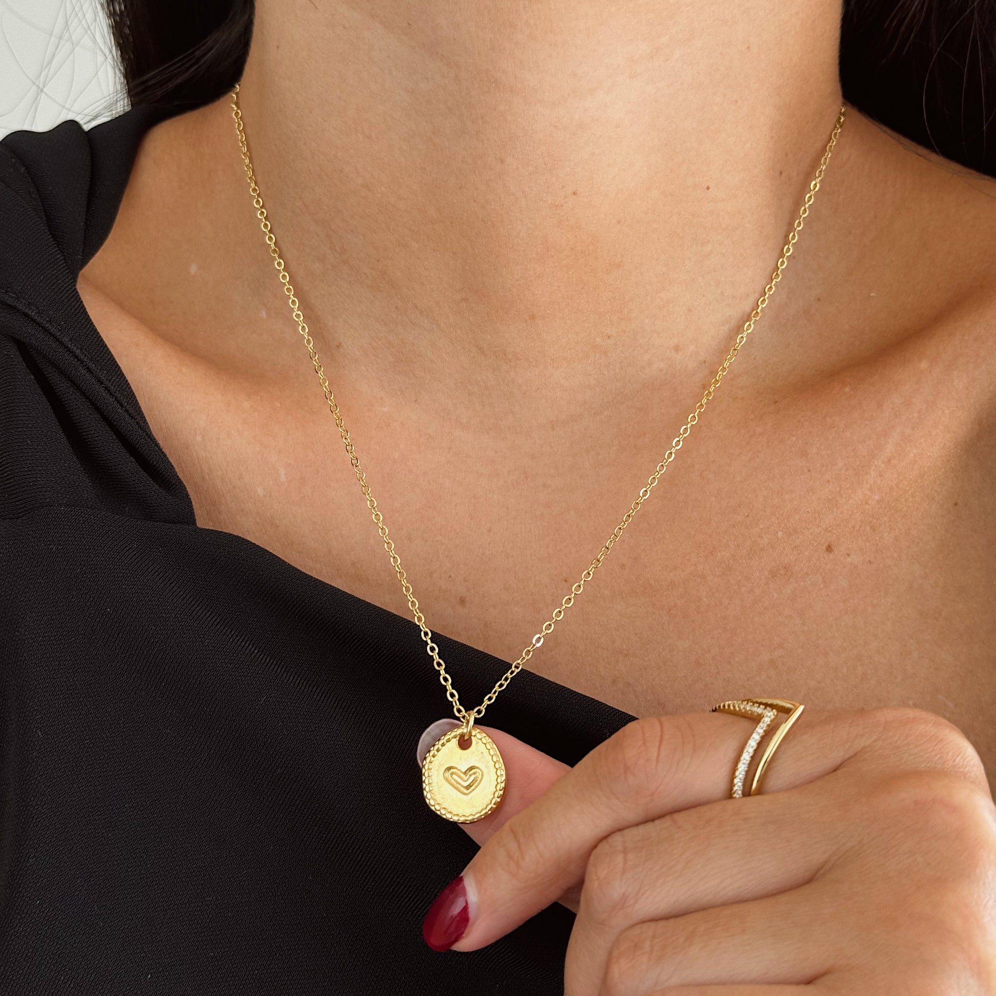 Hay piezas que conectan con tu esencia, y el Collar Amara es una de ellas. Esta joya de nuestra : Her Collection presenta una medalla de bordes irregulares que celebra la belleza de lo imperfecto, con un delicado corazón en relieve justo en el centro.